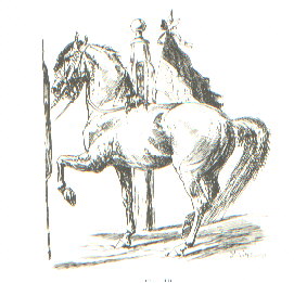 mit seinem vollen Gewicht auf die Lende gefallen ist, statt der Bewegung zu folgen und seinen Oberkörper in den Oberschenkeln und den Knieen aufzufangen. (Anmerkung: Die letzten Bemerkungen beziehen sich auf den Sitz beim Sprung vor Caprilli). Der andere Reiter, welcher leicht reitet, hat dagegen Schluss mir den Oberschenkeln und Knieen, die dem Oberkörper und der Führung Stetigkeit verleihen, den ersteren tragen, ihn und das Gesäss, welches überigens die Fühlung mit dem Sattel nicht verlieren darf, bei den Gangarten elastisch aufangen und in die Bewegung mit hineinfedern; der Rücken wird nicht behindert, sich aufwölben zu lassen oder sich aufgewölbt erhalten zu können, seine Tragfähigkeit wird erhalten und gestärkt, und seine Schwungkraft kann ungestört fördernd und elastisch auf die Gangarten einwirken, die durch ihrenelastischen Auftritt Reiter und Pferd frisch und gesund erhalten. |